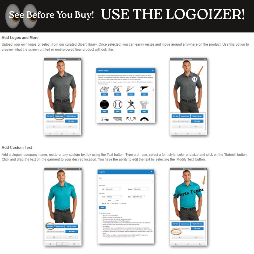 to use the Logoizer and see your items before you buy!
